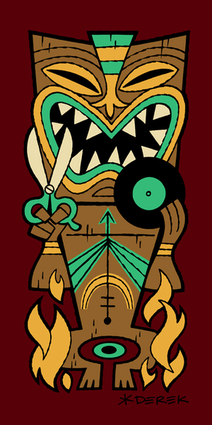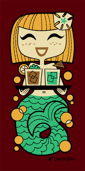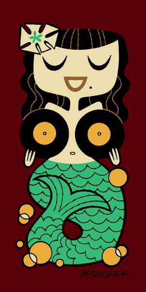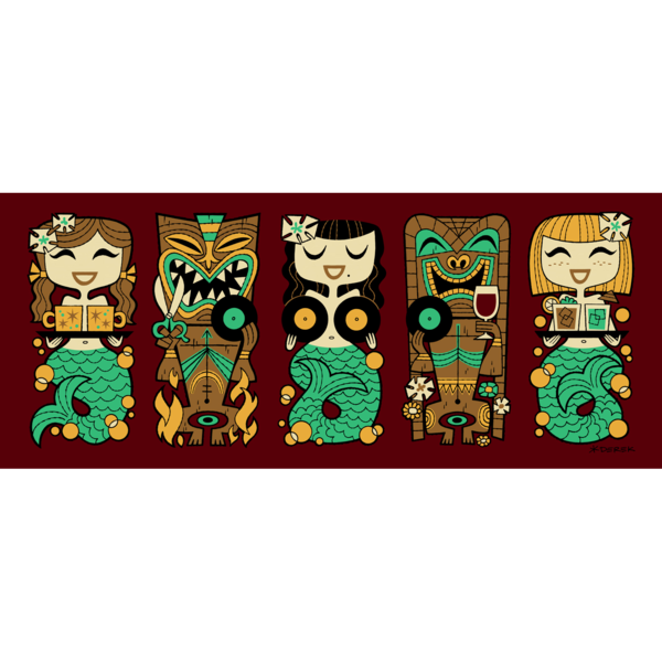 Each print is being sold as a limited edition, 5 color serigraph printed on French uncoated heavy coverstock. The 'TIKIS N' MERMAIDS' full sized print is approximately 24x10 inches, hand numbered out of 70, embossed, and includes a printed signature.